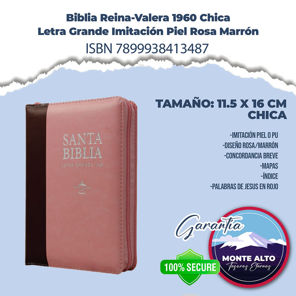 Biblia Reina-Valera 1960 Chica Letra Grande Imitación Piel Rosa Marrón